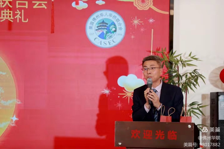 中国驻美大使馆温鹏辉一等秘书在庆典上发表了热情洋溢的讲话,为侨胞们送来祖国的关怀与祝福。他以三个“和/合/阖”为主旨,阐释了深远的意义。首先是和平之“和”,强调中国始终奉行独立自主的和平外交政策,坚持走和平发展道路,国家实力的提升是为了维护世界和平,而非扩张侵略。其次是联合之“合”,温秘书高度肯定佛州华联自1994年成立以来所取得的成绩,赞扬华联在促进中美人文交流、推动华人融入当地、积极服务社区等方面发挥了重要作用,并对本次新老会长顺利交接寄予厚望。最后是阖家团圆之“阖”,他借中秋佳节的契机,祝愿海外侨胞阖家幸福、团圆美满,共享“海上生明月,天涯共此时”的诗情画意。他的讲话情真意切,既传递了祖国的关怀,也展现了外交的高度。温秘书以三个同音字“和/合/阖”为脉络,和平之和、联合之合、阖家团圆之阖,既有大国视野,又有社团关怀,更有节日温情。这样的巧思妙用,使得讲话更富哲理与文化意蕴,让现场侨胞在聆听中不仅倍感祖国的温暖与鼓舞,更对“和/合/阖”这一中华文化的核心理念有了深刻体会。这一番讲话为庆典增添了庄重与温馨的气氛。